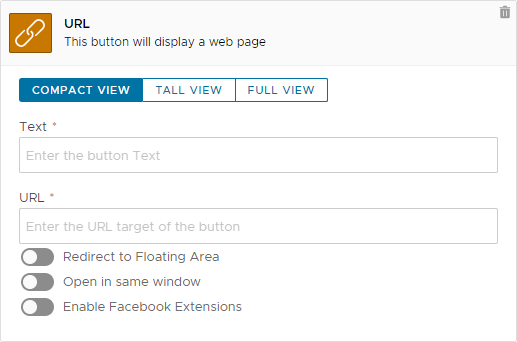 This button will display the contents of a specific web page to the user. The size of the web view can be configured from compact to full.