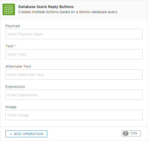 On Click. This action will trigger any child operation as the user clicks the associated chat button.