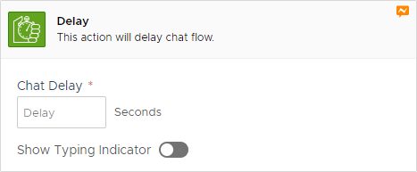 This action will delay chat flow by a given amount of seconds. A typing indicator can be enabled to give the end user the feeling of someone typing on the chatbot end.