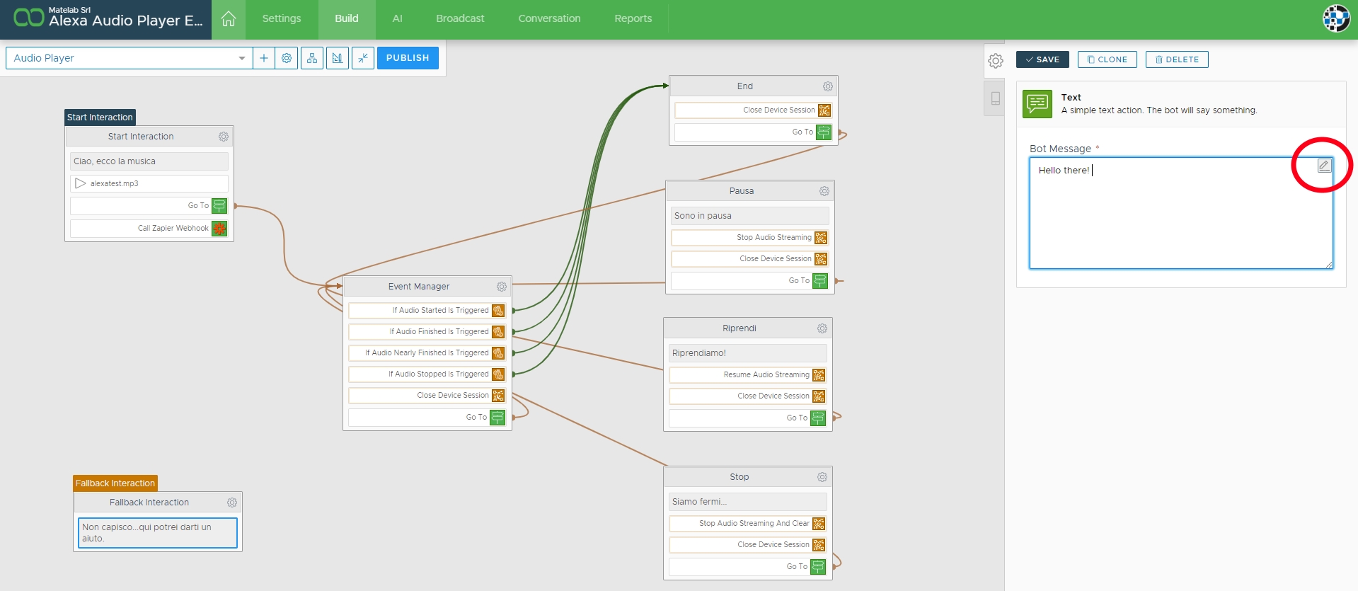 Hello {{user_name}}, how are you?Assuming that the variable user_name has "gian" as value, the text at runtime will automatically become: