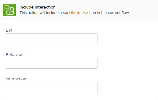 This action will dynamically include an interaction from a behaviour and execute it as part of the current behaviour.