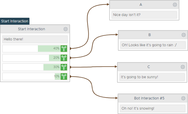 This action will be randomly triggered by a specific threshold. Use this action to create split tests or random chat flow splits in the conversation.