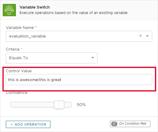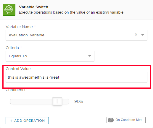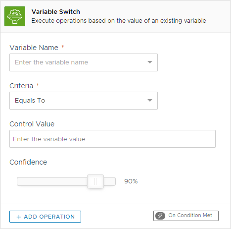 Use this action to execute operations based on the value of an existing variable. You can, for example, change the conversation flow redirecting the user to a different interaction.