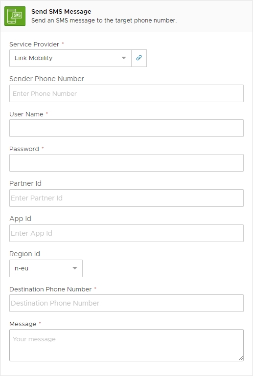 The SMS message is delivered to the selected provider and queued. Actual timings for message delivery may vary, depending on the used provider.