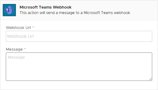This action can be used to post to a standard text message to a [Microsoft Teams Webhook](https://learn.microsoft.com/en-us/microsoftteams/platform/webhooks-and-connectors/how-to/add-incoming-webhook?tabs=newteams%2Cdotnet).