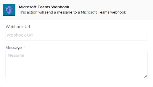 This action can be used to post to a standard text message to a Microsoft Teams Webhook.