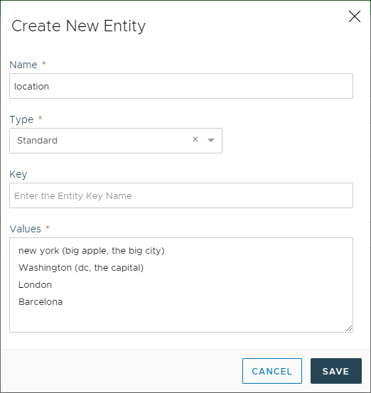 I live in the big appleThe above expressions are both referring to New York. By default, we could add both New York and Big Apple to the entity location and the AI engine would be perfectly capable of parsing both.