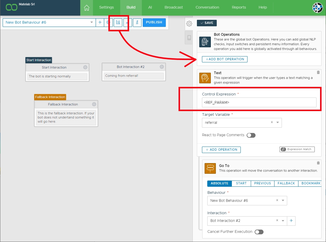 Inside your chatbot, the referral (ref) value will be translated to a simple text. For your chatbot it will be like the user has typed the referral value. You can check this value anywhere in the chatbot by simply using a global text detection operation.