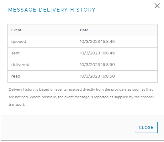 Some of the channels supported by MyLINK Connect will supply additional information on the status of the message delivery. Whenever possible, MyLINK Connect will try to display additional delivery information for each message exchanged on such channels.