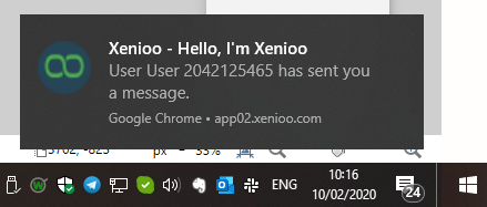Your operator has at least one browser tab set on the Xenioo conversation page for the bot. Offline notifications are currently not supported but can be created using mail or API calls to different services.