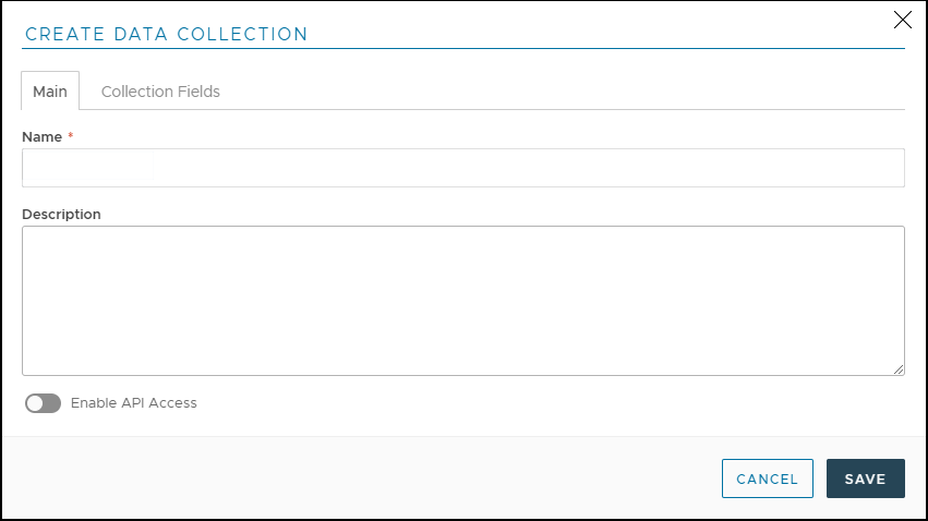 This is the name of the collection. It is the name that you will later use inside the designer or in API calls to refer to the collection. Collection names can be whatever you prefer but cannot contain the following characters: (space), (tab), ., $, \ or /. If any of these characters is found in the collection name, it will be replaced by an underscore (_). Also, collection names cannot be longer than 64 characters.